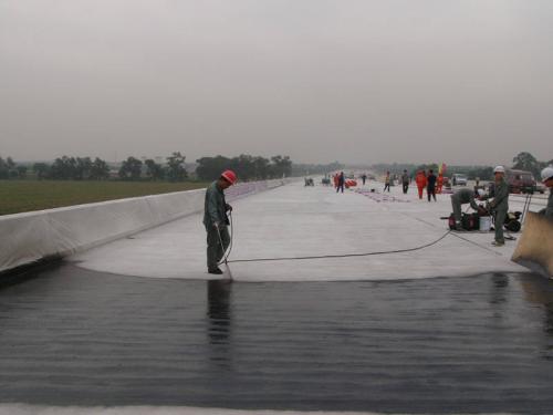 (2)垂直結(jié)構(gòu)施工,卷材必須縱向敷設(shè),自上向下對(duì)正,自下向上排氣壓實(shí),要求找平層與卷材同時(shí)涂膠,厚度約1mm。