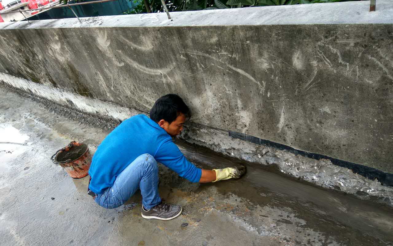 3、采用防水修補砂漿修補滲漏部位及下飄臺飾面孔洞;