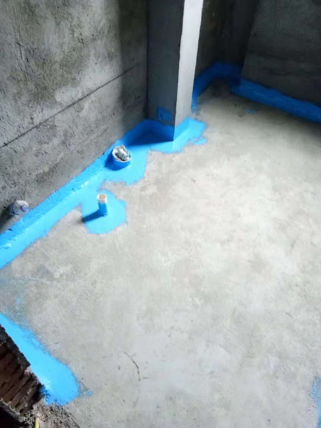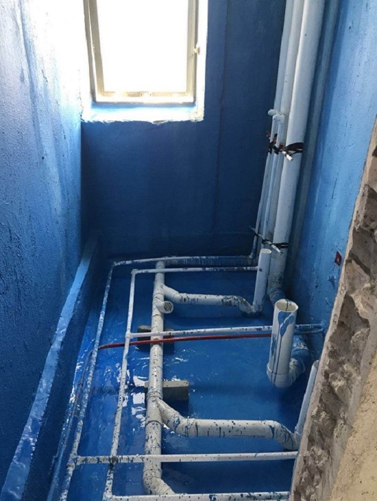 6、待第二遍防水涂料成膜后,做閉水試驗(yàn),放水高度不低于30㎜,24~48小時(shí)內(nèi)無(wú)滲漏為合格。